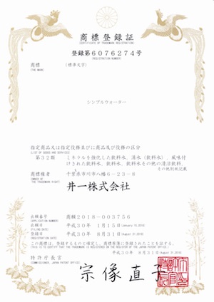 下記の通り、弊社シンプルウォーターの商標登録取得しましたのでお知らせ致します。 商標登録内容 商標 :シンプルウォーター 登録日:平成30年8月31日 区分 :第32類、第43類 登録番号:登録第6076274号
